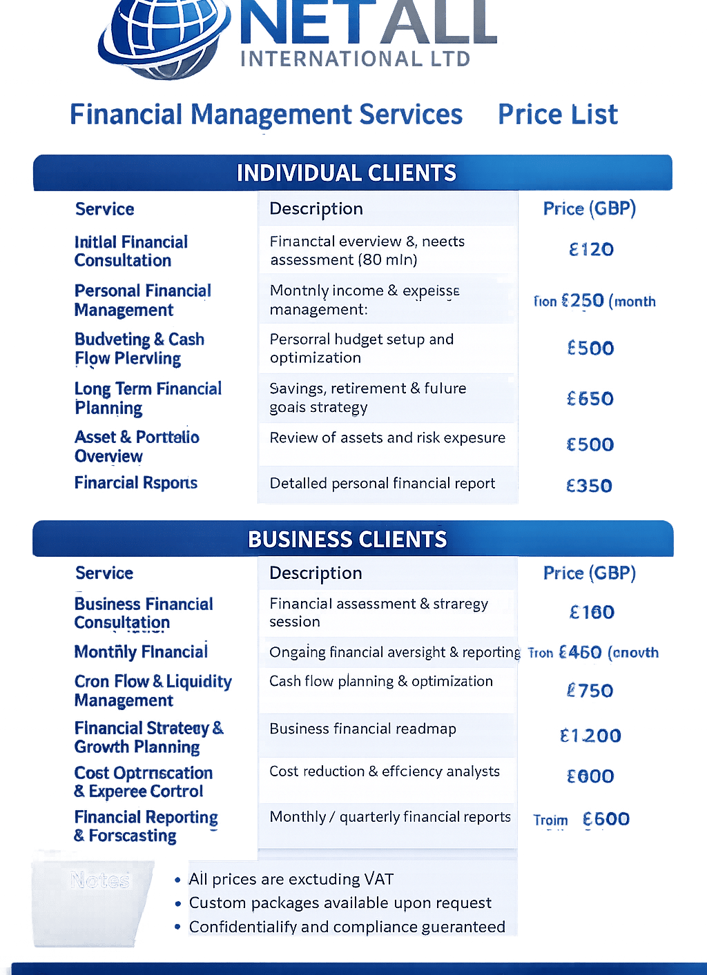 At Net All International, we guide your financial journey with clarity, care, and expertise tailored to your unique goals.
